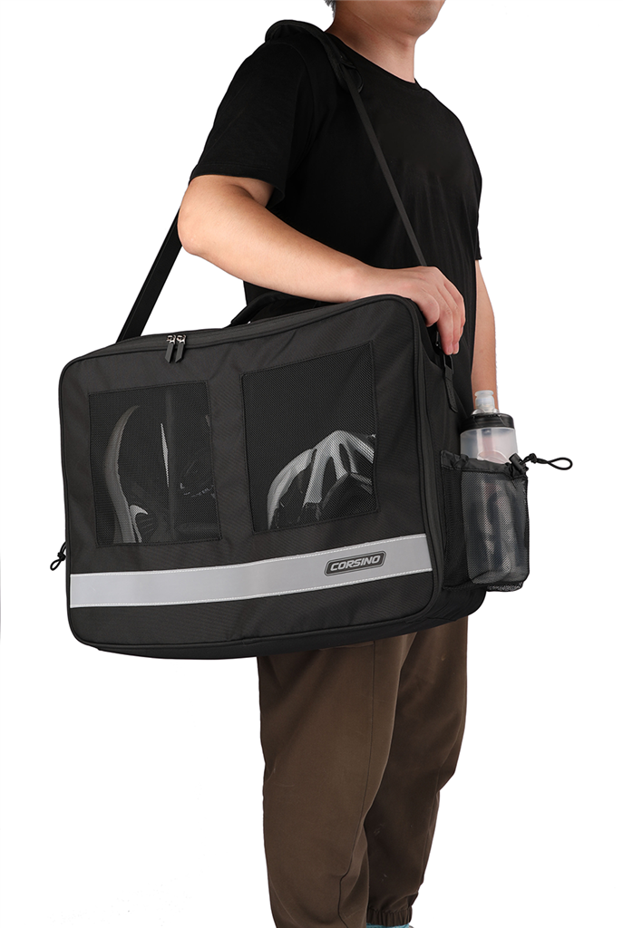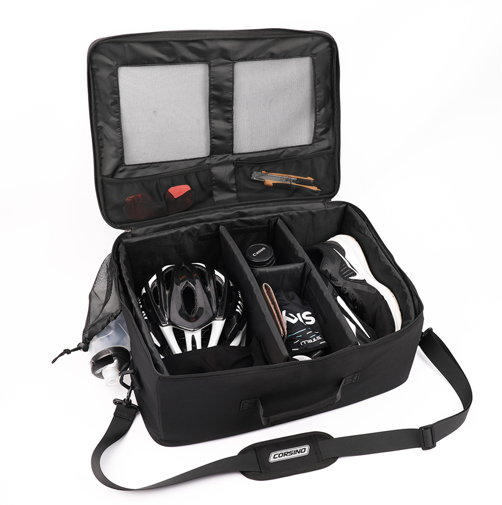The Corsino Traveller Bag is the perfect companion for organizing and transporting all your cycling essentials. Store your helmet, keys, shoes, and other gear effortlessly in this spacious and versatile bag.
